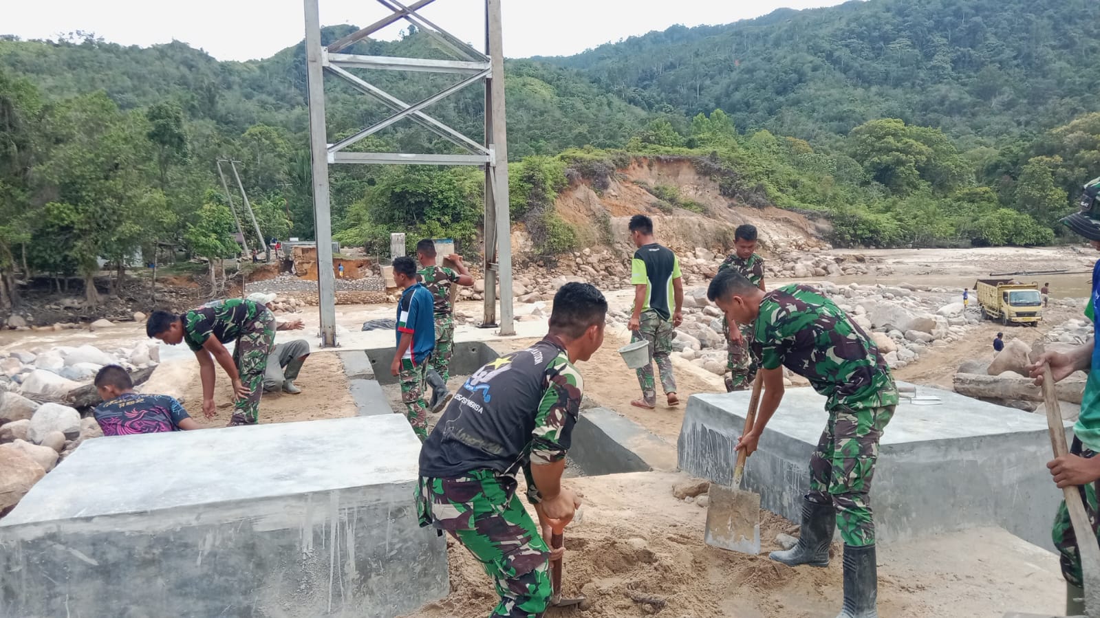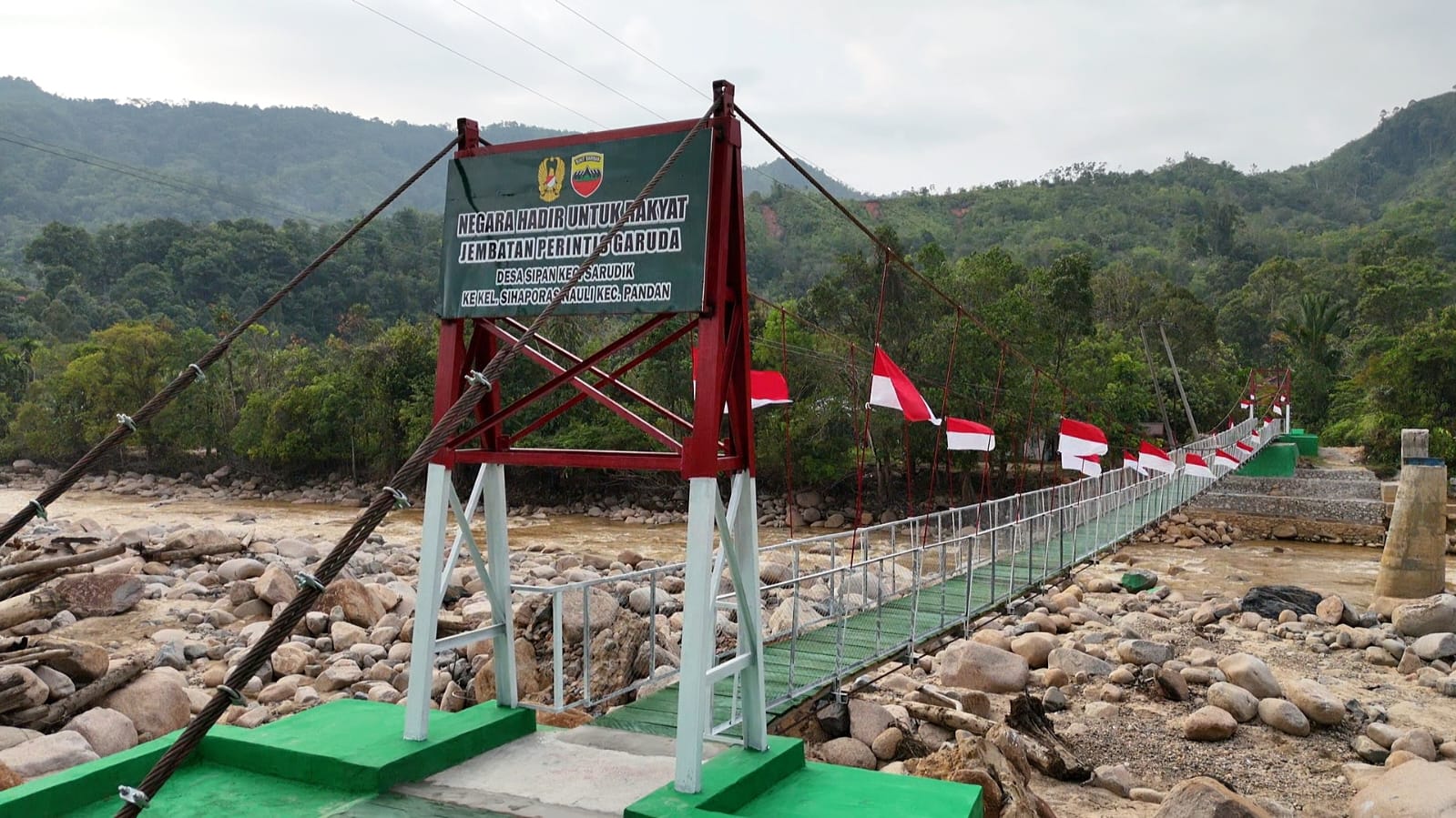 Pembangunan Jembatan Gantung Perintis Garuda Sipan - Sihaporas